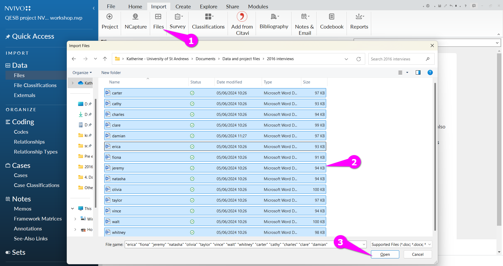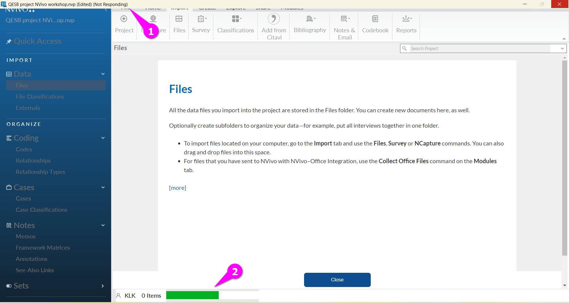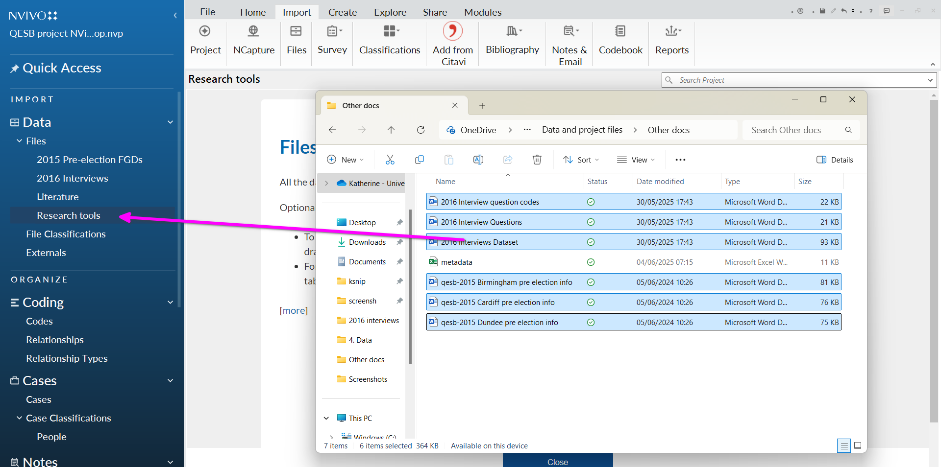 We can also import files to by directly dragging and dropping them from your file explorer into NVivo.