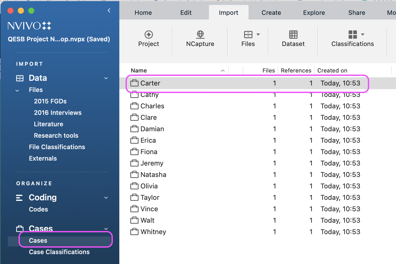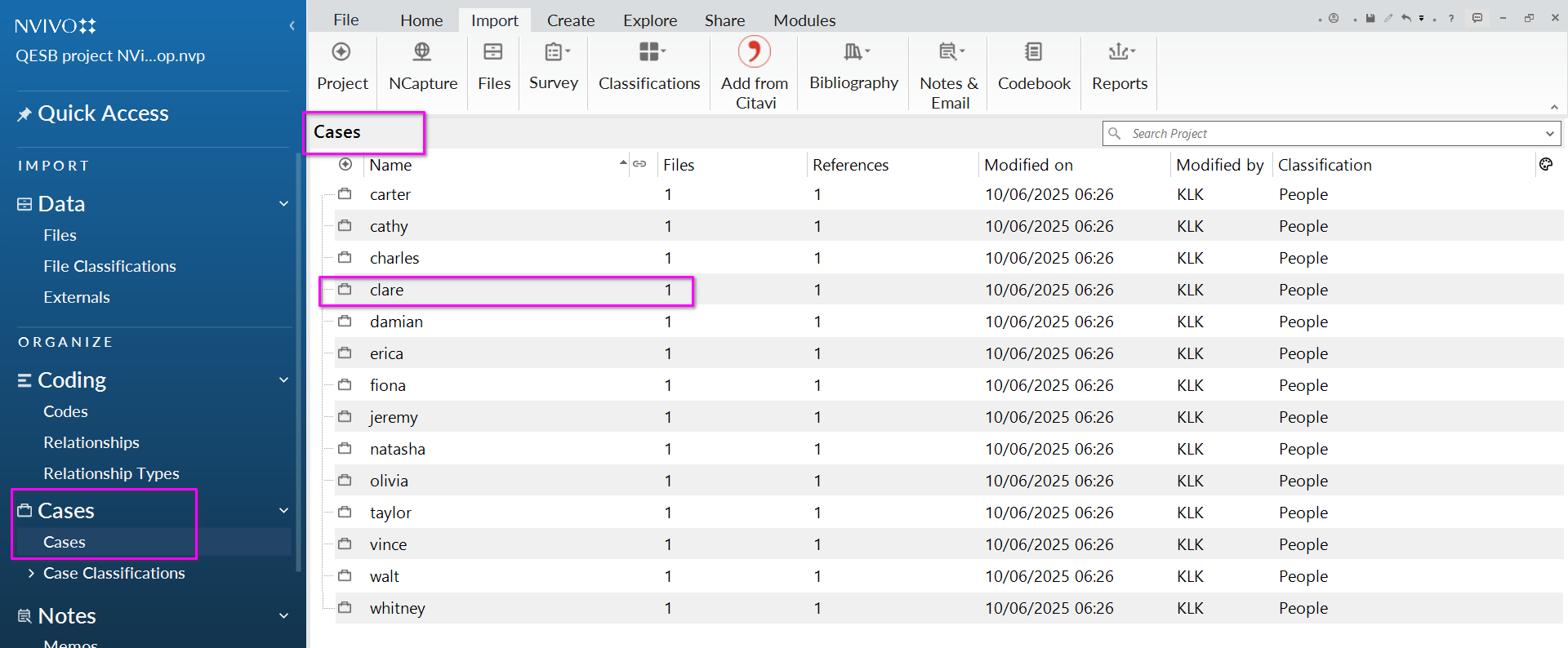 Windows users, you can see that cases have been created for these 14 people by scrolling down the left-hand menu to ‘cases’: