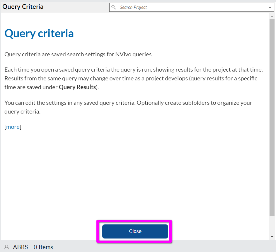 Within the Details list you may see a message explaining what Query criteria are, if so hit ‘Close’.