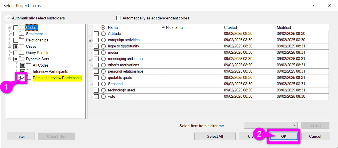 Within the ‘Select Project Items’ dialogue: