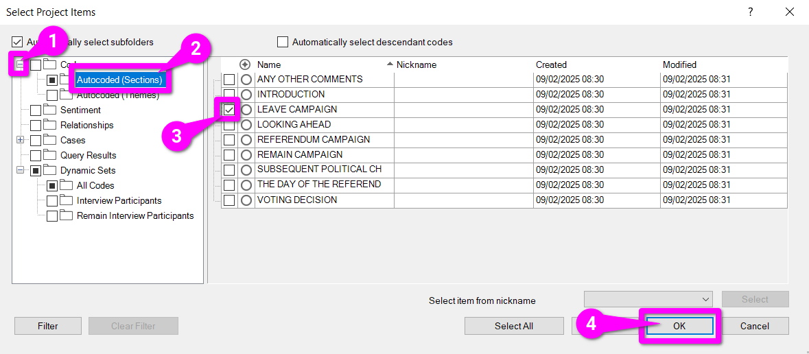 - Select the ‘Autocoded (Sections)’ subfolder.