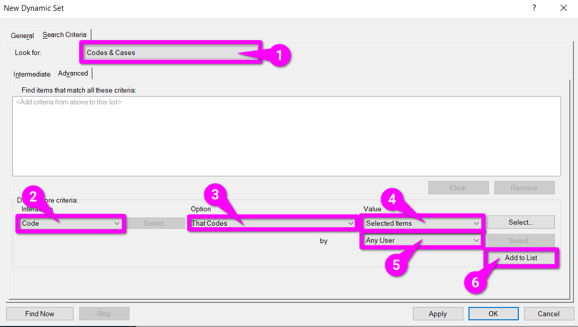 Then in ‘Search Criteria’ tab and ‘Advanced’ sub-tab: