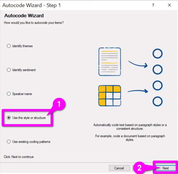 - Select ‘Use the style or structure’