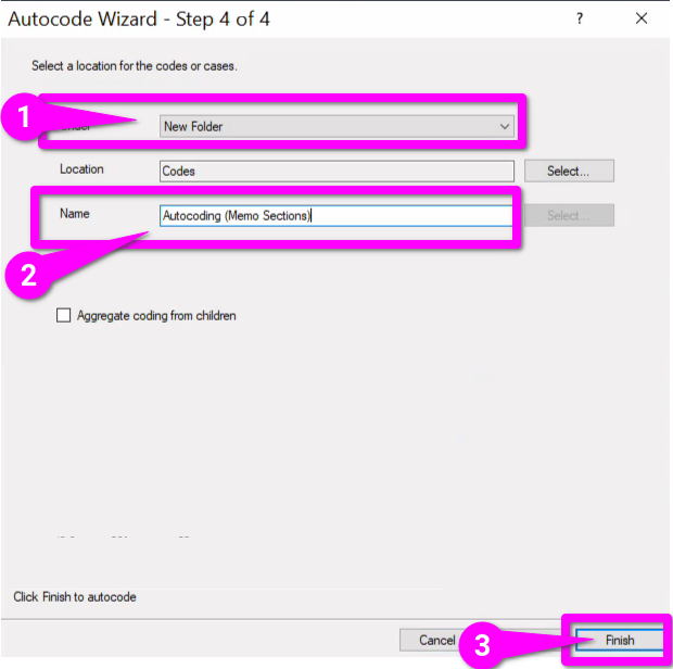 - Provide it an appropriate Name, such as ‘Autocoding (Memo Sections)’