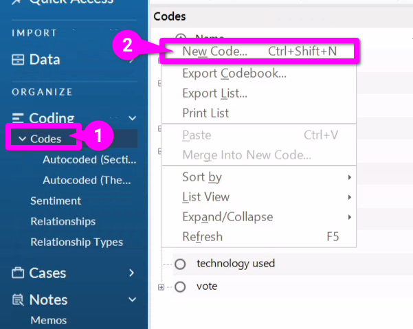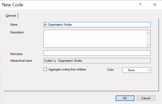 - I have added “z - …” at the start so it is placed at the end when the codes are alphabetically sorted (which they are by default in most places NVivo lists your codes).