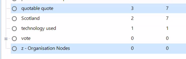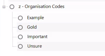 - Drag and drop the existing ‘quotable quote’ code to become a child code of ‘z - Organisation Codes’.